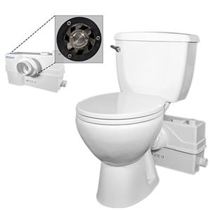 The space saving round seat toilet is for those that have limited space for their addition. At a depth of 25 1/2 inches for the toilet, the minimal room will be taken up if the macerating wastewater processing mechanism is placed in the wall. A bowl height of 15 3/8 inches takes into account the shorter depth to allow for more legroom. The improved 800 W pump is more powerful and the self-contained grinder/pump/switch makes it easily accessed for maintenance purposes.