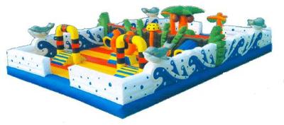 The Island Playground is teeming with fun! The abundance of slides, tunnels, and arches will lead to an abundance of entertainment for junior underwater explorers. The vibrancy of colors and details are a result of the manufacturer's use of 3-D design (allowing for a nearly seamless transition from design to realization) and high-resolution, high-speed digital printers. The printers use ink specifically created for printing on materials made for outdoor use, ensuring long-lasting, brilliant color. For an even greater assurance that the material will remain bright and durable, Bounce and Shout, the makers of these playgrounds, use a liquid laminating machine to coat the vinyl with a PVC membrane. Few other manufacturers include these elements. Moreover, Bounce and Shout has designed these playgrounds to be customizable - the customer can choose from a variety of colors and designs for a number of features throughout the structure.